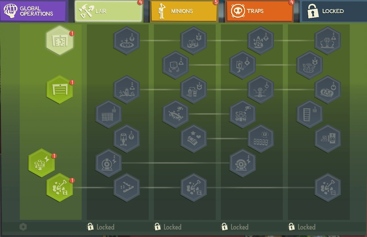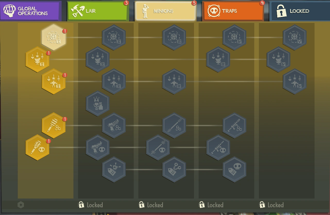 - Offshore Storage - Allows minions to store their equipment near the Lair, greatly increasing Minion Capacity.